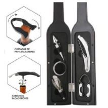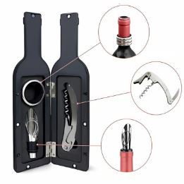 - Herramientas creativas para botellas de vino en forma de botella, juego de 5 piezas, que incluyen vertedor, sacacorchos, abridor, anillo de vino y cortador de papel de aluminio.